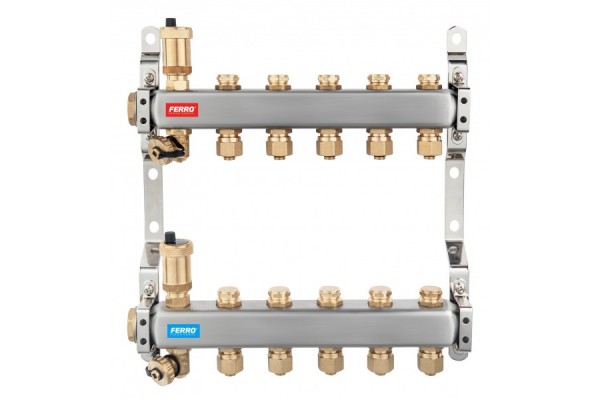 Коллектор из нержавеющей стали с двухконтурными регулирующими механическими клапанами Ferro SN-RO02S купить в Минске по доступной цене