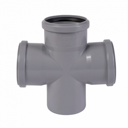 Изготовленные из полипропилена и сополимеров пропилена, применяются для систем хозяйственно-бытовой канализации зданий при максимальной температуре постоянных стоков 80ºС и кратковременных (в течение 1 мин.) стоков с температурой до 95ºС при максимальном их расходе 30 л/мин. Крестовина одноплоскостная используется при монтаже двух ответвлений от основного канализационного стояка, транспортирующего стоки внутри зданий.