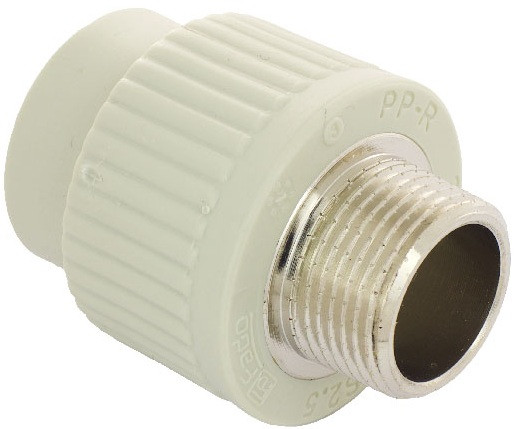 Комбинированный полипропиленовый фитин Используется для соединения полипропиленовой трубы и элемента системы с дюймовым резьбовым соединением. Латунные части производятся методом горячего штампования, пластиковые — методом литья под давлением.