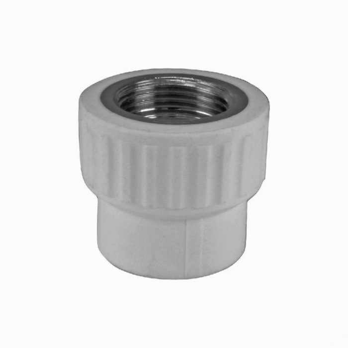 Комбинированный полипропиленовый фитинг, закладная деталь изготовлена из латуни марки ЛС-59-1. Используется для соединения полипропиленовой трубы и элемента системы с резьбовым соединением. Латунные части производятся методом горячего штампования, пластиковые — методом литья под давлением.