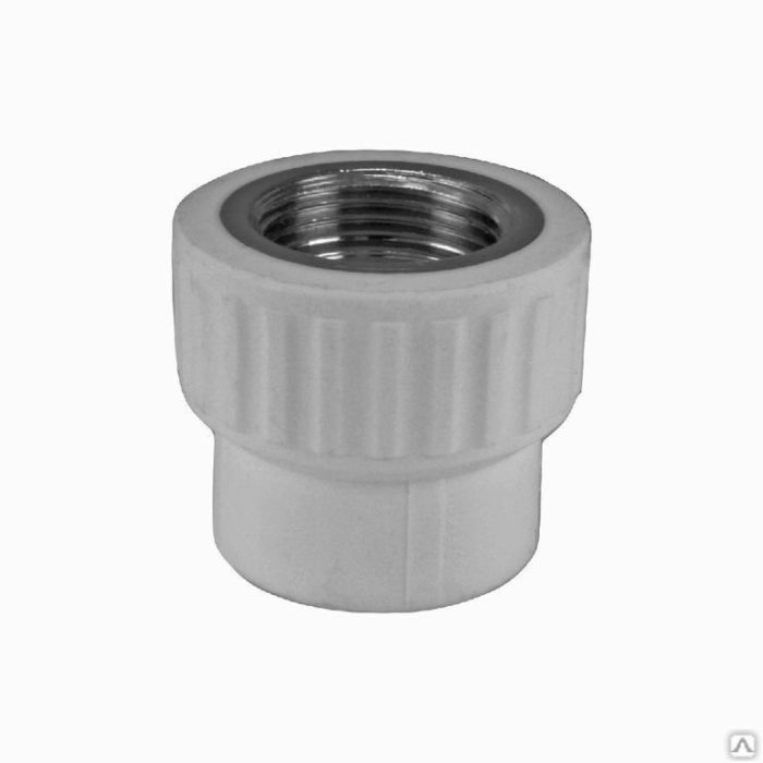 Комбинированный полипропиленовый фитинг, закладная деталь изготовлена из латуни марки ЛС-59-1. Используется для соединения полипропиленовой трубы и элемента системы с резьбовым соединением. Латунные части производятся методом горячего штампования, пластиковые — методом литья под давлением.