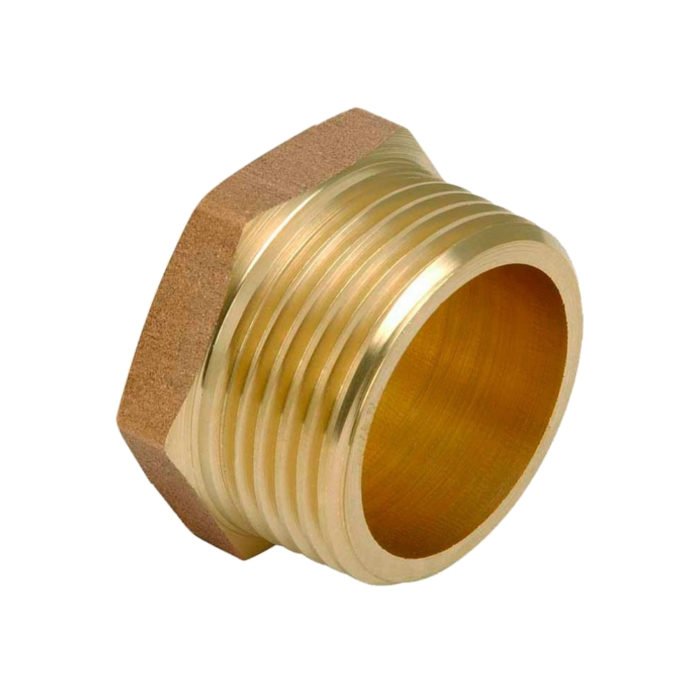Латунная трубопроводная пробка с шестигранной головкой, предназначенная для закрытия конечного участка трубы. Имеет наружную трубную цилиндрическую резьбу по ГОСТу 6357-81. Фитинги рассчитаны на рабочее давление (PN) 2,5 и 4,0 Мпа и температуру транспортируемых сред от -20 до +150 °С.