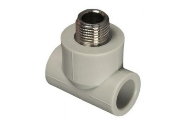 Комбинированный полипропиленовый фитинг, закладная деталь изготовлена из латуни марки ЛС-59-1. Обеспечивает боковой переход с основной магистрали на дюймовую резьбу в системах водоснабжения и отопления. Латунные части производятся методом горячего штампования, пластиковые — методом литья под давлением.